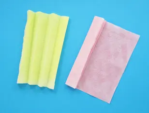 Sobald alles trocken ist, falten Sie jedes Haushaltstuch wie eine Ziehharmonika und schneiden es dann in der Mitte durch.